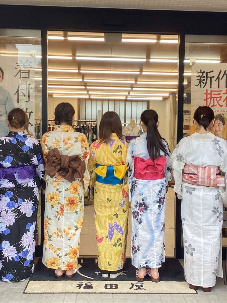 無料体験レッスンでは、浴衣の着付けを学びます。