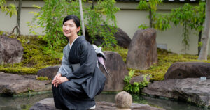 着物の裾から出る足は、そのまますんなり着地が◎。